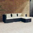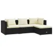 Seti vrtnega pohištva - Vrtna garnitura - Vrtni pohištvo set z blazinami 4-delna poli ratan črna