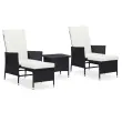 Seti vrtnega pohištva - Vrtna garnitura - Vrtni pohištvo set z blazinami 3-delna poli ratan črna