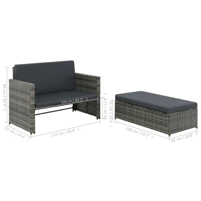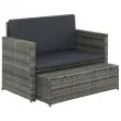 Seti vrtnega pohištva - Vrtna garnitura - Vrtni pohištvo set z blazinami 2-delna poli ratan siva