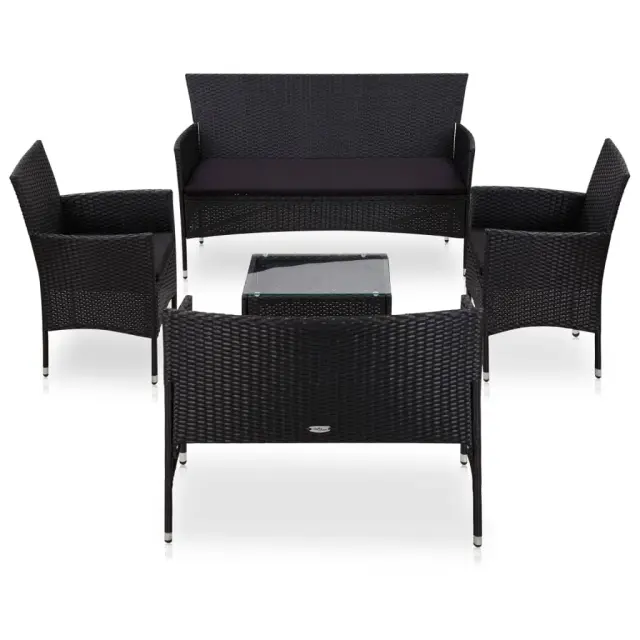 Seti vrtnega pohištva - Vrtna garnitura - Vrtni pohištvo set z blazinami 5-delna poli ratan črna