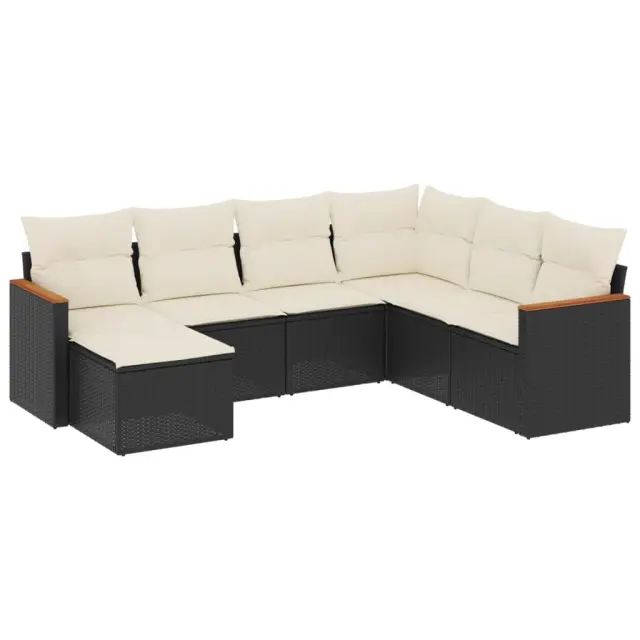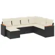 Seti vrtnega pohištva - Vrtna garnitura - Vrtni pohištvo set 7-delna z blazinami črn poli ratan