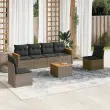 Seti vrtnega pohištva - Vrtna garnitura - Vrtni pohištvo set 7-delna z blazinami siv poli ratan