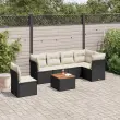 Seti vrtnega pohištva - Vrtna garnitura - Vrtni pohištvo set 7-delna z blazinami črn poli ratan