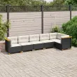 Seti vrtnega pohištva - Vrtna garnitura - Vrtni pohištvo set 6-delna z blazinami črna poli ratan