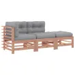 Ta lesena vrtna sedežna garnitura, ki jo odlikujejo letve in mehke blazine, bo odličen dodatek za vaš vrt, teraso ali teraso za prijetno druženje z družino ali prijatelji. Trden les douglas: Trden les douglas je zelo trpežen les, ki je kot nalašč za uporabo na prostem. Les douglas je tudi dovolj močan ter potrebje minimalno vzdrževanja, tudi pod vplivom vremenskih vplivov.Vzdržljiv in stabilen okvir: Leseni okvir zagotavljajo trdnost sedežne garniture za vsakodnevno uporabo na prostem.Udobna izkušnja sedenja: Naslonjalo za hrbet in naslonjalo za roke zagotavljata dodatno udobje pri sedenju na vrtnem pohištvu.Poleg tega debelo podložena blazine zagotavljajo udobje med sedenjem.Modularna zasnova: Sedežna garnitura je prilagodljiva in enostavna za premikanje.Kombinirate jo lahko z drugimi modularnimi segmenti v spletni trgovini ter tako ustvarite vrtno sedežno garnituro po lastnih željah! Dobro je vedeti:Če želite, da vaše zunanje pohištvo ostane lepo, vam priporočamo, da ga zaščitite z vodoodporno prevleko.Material: Trden les douglas (neobdelan)Material letvic: Vezan lesDimenzije sredinskega kavča: 57,5 x 63,5 x 60 cm (D x Š x V)Dimenzije kotnega kavča: 63,5 x 63,5 x 60 cm (D x Š x V)Dimenzije vrtnega stolčka za noge: 57,5 x 57,5 x 30 cm (D x Š x V)Maksimalna nosilnost (na sedež): 110 kgBlazina:Barva: SivaMaterial prevleke: Tkanina OxfordMaterial polnila: PP bombažDimenzije blazine za sedež: 60 x 60 x 12 cm (D x Š x D)Dimenzije blazine za hrbet: 60 x 32 x 12 cm (D x Š x D)Potrebno sestavljanje: DaPaket vsebuje:1 x Sredinski kavč1 x Kotni kavč1 x Stolček za noge/klubska mizica3 x Blazina za sedež3 x Blazina za hrbet Največ 110 kg na sedež.