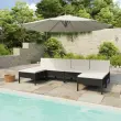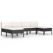 S to vrtno sedežno garnituro za teraso lahko ustvarite privlačen in sproščen prostor za počivanje, o katerem ste vedno sanjali. Na tem kompletu vrtnega pohištva boste lahko ob sončnih popoldnevih ali poletnih večerih uživali s svojo družino ali prijatelji! Ta garnitura je sestavljena iz 6 kosov, zato jo boste lahko postavili po želji in ustvarili kombinacije, ki so vam všeč. Izdelana je iz trpežnega PE ratana, pod katerim je prašno premazan jeklen okvir, ta garnitura je močna, trpežna in odporna na vremenske vplive. Zahvaljujoč vremensko odpornemu PE ratanu je počivalna garnitura enostavna za čiščenje, trpežna in primerna za vsakodnevno uporabo. Debelo podložene blazine in izjemno globoka moderna sedišča zagotavljajo, da se boste vedno veselili sprostitve na tej garnituri. Zaradi lahke in modularne zasnove lahko garnituro brez težav premikate po hiši. Opomba: Priporočamo, da komplet pokrijete v primeru dežja, snega in zmrzali.Barva: ČrnaBarva blazine: Kremno belaMaterial: PE ratan, jeklo s prašnim premazom, blago (100 % poliester)Dimenzije sredinskega kavča: 57 x 69 x 67 cm (Š x G x V)Velikost sedeža: 57 x 57 cm (Š x G)Višina sedeža, merjena od tal: 35 cmDimenzije naslonjala za noge: 60 x 60 x 35 cm (Š x G x V)Potrebno sestavljanje: DaPaket vsebuje:4 x Sredinski kavč2 x Stolček za noge6 x Blazina za sedež4 x Blazina za hrbet