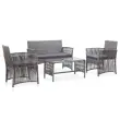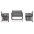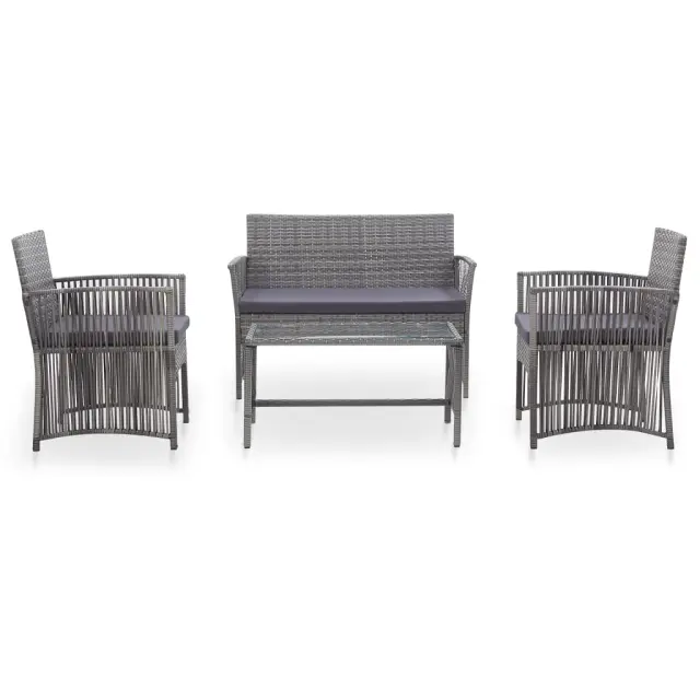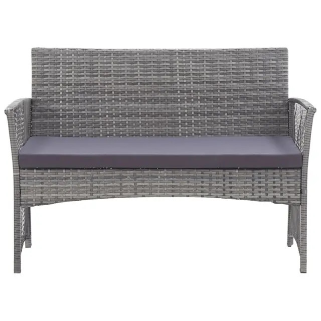 S 4-delno vrtno sedežno garnituro lahko svoje dolgočasne zunanje prostore naredite tako privlačne, kot so notranji! Ta garnitura združuje stil in funkcionalnost, zato bo postala glavni del vaše terase ali vrta. Celotna garnitura je oblikovana za celoletno uporabo na prostem. Zahvaljujoč na vremenske vplive in vodo odpornemu PE ratanu je sedežna garnitura preprosta za čiščenje, trpežna in primerna za vsakodnevno uporabo. Zunanji komplet kavča ima jeklen okvir s prašnim premazom, zato je zelo vzdržljiv. Debelo podložene blazine so priložene za optimalno udobje med sedenjem. Prevleka z zadrgo je enostavna za pranje. Paket vsebuje 1 klop, 2 stola in 1 klubsko mizico. Opomba: Priporočamo, da komplet vrtnega pohištva pokrijete v primeru dežja, snega in zmrzali ter mu tako podaljšate življenjsko dobo.Barva ratana: AntracitnaBarva blazine: Temno sivaMaterial: Jeklen okvir s prašnim premazom + poli ratanMaterial blaga: 100 % poliesterDimenzije klubske mizice: 80 x 45 x 40 cm (D x Š x V)Dimenzije klopi: 109 x 58 x 76 cm (Š x G x V)Dimenzije stola: 55,5 x 58 x 76 cm (Š x G x V)Višina sedeža: 38,5 cmVišina naslonjala za roke: 57/59 cmVelikost sedeža (stol): 47 x 49 cm (Š x G)Velikost sedeža (klop): 98,5 x 49 cm (Š x G)Debelina blazine: 5 cmPaket vsebuje:2 x Stol1 x Klop1 x Klubska mizica