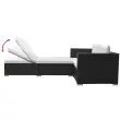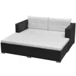 Stilska in izjemno udobna sedežna garnitura iz ratana bo prava zvezda vašega vrta ali verande. Ta vrtna sedežna garnitura je izdelana iz vremensko odpornega PE ratana, zato je preprosta za čiščenje in dovolj trpežna za vsakodnevno uporabo na prostem. Ležalnik in kavča imata močan in trpežen jeklen okvir s prašnim premazom. Ležalnik ima prilagodljivo naslonjalo, zato boste vedno našli najbolj udoben položaj. Snemljive blazine za sedeže in hrbet so zelo udobne, njihove prevleke iz poliestra pa so mehke in preproste za čiščenje. Ta lahek, modularen komplet sedežne garniture iz ratana je preprost za premikanje, zato ga boste lahko postavili po želji. Paket vsebuje 2 kotna kavča, 1 ležalnik, 3 blazine za sedeže in 2 blazini za hrbet. Opomba: Priporočamo, da v primeru dežja, snega in zmrzali komplet pokrijete.Barva ratana: ČrnaBarva blazin: Kremno belaMaterial kavča in ležalnika: PE ratan + jeklen okvir s prašnim premazomMaterial prevlek za blazine: Tkanina (100 % poliester)Debelina blazine: 6 cmDimenzije kotnega kavča: 69,5 x 69,5 x 52,5 cm (Š x G x V)Širina in globina sedeža: 59,5 cmVišina sedeža, merjena od tal: 26 cmDimenzije vrtnega ležalnika: 139 x 69,5 x 26 cm (D x Š x V)Vrtni ležalnik s prilagodljivim naslonjalomPaket vsebuje:2 x Kotni kavč1 x Vrtni ležalnik3 x Blazina za sedež2 x Blazina za hrbet
