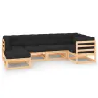 Ta vrtna garnitura je odlična izbira za sproščanje in uživanje v lepem vremenu, za dremanje ali klepetanje z družino ali prijatelji. Zunanja sedežna garnitura je izdelana iz trdne borovine, zato je močna in stabilna. Kombinirate jo lahko z drugimi modularnimi segmenti in tako ustvarite svojo lastno vrtno sedežno garnituro! Opomba: Da bi podaljšali življenjsko dobo vašega zunanjega pohištva, vam priporočamo, da ga zaščitite z vodoodporno prevleko.Barva blazin: AntracitnaMaterial: Trdna borovina (neobdelana), blago (100 % poliester)Dimenzije sredinskega kavča: 70 x 70 x 67 cm (Š x G x V)Dimenzije kotnega kavča: 70 x 70 x 67 cm (Š x G x V)Dimenzije stolčka za noge: 70 x 70 x 30 cm (Š x G x V)Dimenzije sedežne blazine: 70 x 70 x 8 cm (D x Š x D)Dimenzije blazine za hrbet: 70 x 40 x 8 cm (D x Š x D)Potrebno sestavljanje: DaPaket vsebuje:2 x Sredinski kavč 3 x Kotni kavč 1 x Stolček6 x Blazina za sedež8 x Blazina za hrbet Največ 110 kg na sedež.