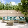 Ta lesena vrtna sedežna garnitura, ki jo odlikujejo letve, bo odličen dodatek za vaš vrt, verando ali teraso za prijetno druženje z družino ali prijatelji. Impregniran les: Trdna borovina je čudovit naravni material. Borovina ima ravne vzorce, grče pa dajejo materialu njegov značilen, rustikalen videz. Impregnacija je postopek konzerviranja, ki se izvaja z uporabo avtoklavov. Obdelava s pritiskom poveča odpornost proti razpadanju in vremenu.Vzdržljiv in stabilen okvir: Leseni okvirji zagotavljajo trdnost sedežne garniture za vsakodnevno uporabo na prostem.Modularna zasnova: Sedežna garnitura je prilagodljiva in enostavna za premikanje. Kombinirate jo lahko z drugimi modularnimi segmenti v spletni trgovini ter tako ustvarite vrtno sedežno garnituro po lastnih željah! Dobro je vedeti:Če želite, da vaše zunanje pohištvo ostane lepo, vam priporočamo, da ga zaščitite z vodoodporno prevleko.Blazine niso vključene v dobavo.Material: Podtlačno impregnirana borovinaMaterial letvic: Vezan lesDimenzije kotnega kavča: 63,5 x 63,5 x 60 cm (Š x G x V)Dimenzije sredinskega kavča: 57,5 x 63,5 x 60 cm (Š x G x V)Dimenzije vrtnega stolčka/klubske mizice: 57,5 x 57,5 x 30 cm (Š x G x V)Maksimalna nosilnost (na sedež): 110 kgPotrebno sestavljanje: DaPaket vsebuje:3 x Kotni kavč2 x Sredinski kavč1 x Stolček za noge/klubska mizica Največ 110 kg na sedež.