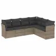 Seti vrtnega pohištva - Vrtna garnitura - Vrtni pohištvo set 6-delna z blazinami siv poli ratan