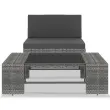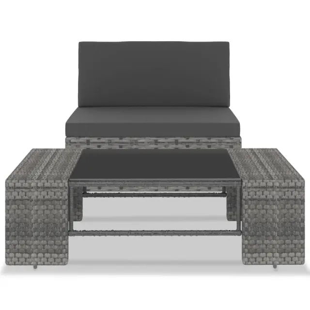 Ta sedežna garnitura iz poli ratana združuje stil in funkcionalnost, zasnovana pa je tako, da se lahko celo leto uporablja na prostem. Zahvaljujoč vremensko odpornemu PE ratanu je ta garnitura trpežna, enostavna za čiščenje in primerna za vsakodnevno uporabo. Ima močan jeklen okvir s prašnim premazom. Je tudi lahka in modularna, zato je popolnoma fleksibilna in preprosta za prenašanje, podala pa se bo k vsaki postavitvi. Debele, snemljive blazine za sedeže so izjemno udobne. Klubska mizica s površino iz kaljenega stekla nudi prostor za vaše knjige, revije ali skodelico čaja za preživljanje prijetnih in sproščenih trenutkov. Garnituro lahko združite z drugimi modularnimi segmenti, ki so na voljo v spustnem meniju, ter tako ustvarite vrtno sedežno garnituro po svojih željah! Primere lahko najdete na zadnjih 9 slikah. Opomba: Priporočamo, da komplet pokrijete v primeru dežja, snega in zmrzali.Barva: Siva in antracitnaMaterial: PE ratan, blago (100 % poliester), jeklo s prašnim premazom, kaljeno stekloSredinski kavč:Dimenzije: 58,5 x 65,5 x 52 cm (Š x G x V)Širina sedeža: 58,5 cmGlobina sedeža: 60,5 cmVišina sedeža: 26 cmDimenzije blazine za hrbet: 58,5 x 30 x 8 cm (D x Š x D)Dimenzije blazine za sedež: 58,5 x 60 x 8 cm (D x Š x D)Klubska mizica:Dimenzije: 90 x 50 x 26 cm (D x Š x V)Debelina stekla: 5 mmPotrebno sestavljanje: DaPaket vsebuje:1 x Klubska mizica1 x Kavč1 x Blazina za hrbet1 x Blazina za sedež