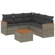 Ta vrtna sedežna garnitura je popoln dodatek za vaše dvorišče, teraso ali verando, saj zagotavlja udoben in vabljiv prostor za klepet z družino in prijatelji ali preprosto za sprostitev in uživanje na prostem. Vzdržljiv material: PE ratan, znan tudi kot poli ratan, je močan sintetični material, ki zahteva malo vzdrževanja in je videti kot naravni ratan. Je lahek, enostaven za čiščenje in se zaradi svoje vzdržljivosti in odpornosti na vremenske vplive pogosto uporablja za zunanje pohištvo.Funkcija shranjevanja z vodoodporno torbo: Vrtno pohištvo ima pod sedežem prostor za shranjevanje, opremljen z vodoodporno torbo za shranjevanje blazin, igrač in drugih stvari. Notranjo torbo je mogoče varno pritrditi na zunanje pohištvo s kavljem in zanko za večjo stabilnost.Stabilna mizna plošča, ki je enostavna za čiščenje: Ta vrtna miza ima ploščo iz akacijevega lesa, ki je čvrsta, vzdržljiva in jo je enostavno čistiti z vlažno krpo.Prevleko je mogoče odstraniti in oprati: Te sedežne blazine imajo odstranljive prevleke za lažje pranje in vzdrževanje.Modularna zasnova: Ta komplet zunanjega pohištva ima modularno zasnovo, zaradi česar je popolnoma prilagodljiv in enostaven za premikanje, tako da lahko zunanjo garnituro postavite kakor koli želite. Dobro je vedeti:Če želite, da vaše zunanje pohištvo ostane lepo, vam priporočamo, da ga zaščitite z vodoodporno prevleko.Maksimalna nosilnost (na sedež): 110 kgUV-odpornoPlastične nastavljive nogePotrebno sestavljanje: DaKotni sedež s naslonom za roke iz ratana:Barva: SivaMaterial: PE ratan, jeklen okvir s prašnim premazomDimenzije: 62 x 62 x 69 cm (Š x G x V)Velikost sedeža: 55 x 55 cm (Š x G)Višina sedeža, merjena od tal: 37 cmSrednji sedež:Barva: SivaMaterial: PE ratan, jeklen okvir s prašnim premazomDimenzije: 55 x 62 x 69 cm (Š x G x V)Velikost sedeža: 55 x 55 cm (Š x G)Višina sedeža, merjena od tal: 37 cmKotni sedež z naslonom za roke iz akacijevega lesa:Barva: SivaMaterial: PE ratan, prašno premazano jeklo, trden akacijev les z oljnim premazomDimenzije: 62 x 62 x 69 cm (Š x G x V)Velikost sedeža: 55 x 55 cm (Š x G)Višina sedeža, merjena od tal: 37 cmVišina naslonjal za roke od tal: 55 cmMiza:Barva: SivaMaterial: PE ratan, prašno premazano jeklo, trden akacijev les z oljnim premazomDimenzije: 55 x 55 x 37 cm (D x Š x V)Blazina:Barva: Temno sivaMaterial prevleke: Tkanina (100 % poliester)Polnilo sedežne blazine: PenaPolnilo hrbtne blazine: bombažna vlaknaDimenzije sedežne blazine: 55 x 55 x 3 cm (Š x G x D)Dimenzije hrbtne blazine: 55 x 45 x 13 cm (D x Š x D)Paket vsebuje:1 x Vrtna miza1 x Kotni sedež z naslonom za roke iz ratana s funkcijo shranjevanja z vodoodporno torbo2 x Srednji kavč s funkcijo shranjevanja z vodoodporno vrečo2 x Kotni sedež z naslonom za roke iz akacije s funkcijo shranjevanja z vodoodporno torbo6 x Blazina za hrbet5 x Sedežna blazina s snemljivo pralno prevleko