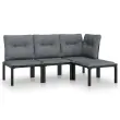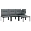 Elegantna in sodobna vrtna sedežna garnitura je popolna izbira za obedovanje ali sproščanje na vašem vrtu. Vremensko odporen material: PE ratan, znan tudi kot poli ratan, je odporen na vremenske vplive in enostaven za čiščenje. Na zunaj ostane lep dolgo časa. Ponuja odlično kakovost, priročnost in estetski videz. Trpežen in stabilen okvir: Prašno premazan jeklen okvir sedežne garniture zagotavlja trdnost in stabilnost.Udobna izkušnja sedenja: Naslonjalo za hrbet zagotavlja dodatno udobje pri sedenju na stolu. Poleg tega debelo podložene blazine zagotavljajo udobje med sedenjem.Modularna zasnova: Zunanja sedežna garnitura je prilagodljiva in enostavna za premikanje, zato jo lahko kombinirate z drugimi modularnimi segmenti iz spletne trgovine in ustvarite svoj osebni sestav vrtne sedežne garniture!Praktičen stolček za noge: Stolček za noge je primeren za počitek nog in sprostitev, hkrati pa vam nudi dodaten sedež na prostem. Dobro je vedeti:Za čim lažjo montažo je vsakemu izdelku priložen priročnik.Opomba:Če želite, da vaše zunanje pohištvo ostane lepo, vam priporočamo, da ga zaščitite z vodoodporno prevleko.Kotni stol:Barva: ČrnaMaterial: PE ratan, tekstilen, prašno lakirano jekloDimenzije: 62 x 62 x 68 cm (Š x G x V)Velikost sedeža: 55 x 55 cm (Š x G)Višina sedeža, merjena od tal: 31 cmMaksimalna nosilnost: 110 kgEnojni stol:Barva: ČrnaMaterial: PE ratan, tekstilen, prašno lakirano jekloDimenzije: 55 x 62 x 68 cm (Š x G x V)Velikost sedeža: 55 x 55 cm (Š x G)Višina sedeža, merjena od tal: 31 cmMaksimalna nosilnost (na sedež): 110 kgStolček za noge:Barva: ČrnaMaterial: PE ratan, tekstilen, prašno lakirano jekloDimenzije: 55 x 55 x 34,5 cm (Š x G x V)Velikost sedeža: 55 x 55 cm (Š x G)Višina sedeža, merjena od tal: 31 cmMaksimalna nosilnost: 110 kgBlazina:Barva blazin: Temno sivaMaterial prevlek za blazine: Tkanina (100 % poliester)Polnilo sedežne blazine: PenaPolnilo hrbtne blazine: PP bombažDimenzije hrbtne blazine: 55 x 45 x 12 cm (D x Š x D)Dimenzije sedežne blazine: 55 x 55 x 3,5 cm (D x Š x D)Paket vsebuje:1 x Kotni stol2 x Enojni stol1 x Stolček za noge4 x Blazina za sedež4 x Blazina za hrbet Maksimalna teža na sedež: 110 kg. Bodite pozorni na tveganje odprtega ognja in druge vire močne toplote v bližini izdelka.