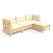 Seti vrtnega pohištva - Vrtna garnitura - Vrtni pohištvo set 4-delna s krem blazinami borovina