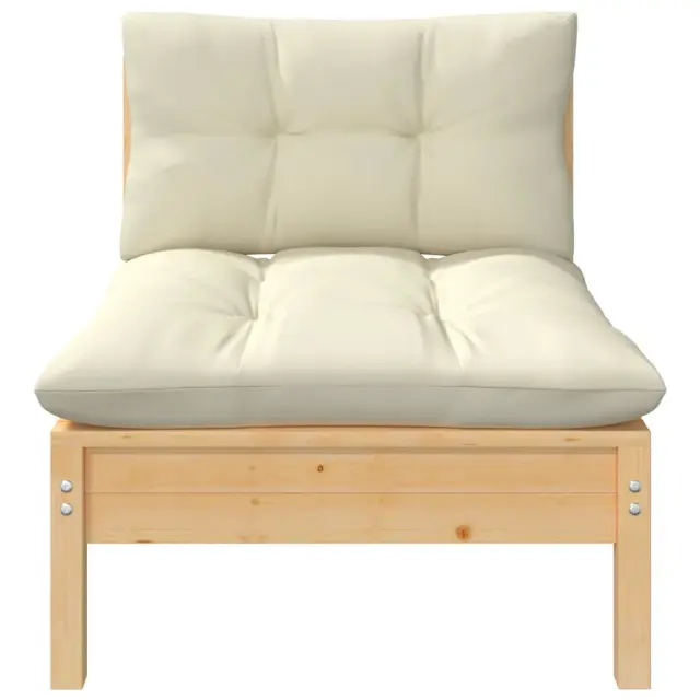 Ta vrtna garnitura je odlična izbira za sproščanje in uživanje v lepem vremenu, za dremanje ali klepetanje z družino ali prijatelji. Sedežna garnitura za teraso je izdelana iz trdne borovine, zato je močna in stabilna. Blazine prispevajo k dodatnemu udobju. Izdelek lahko kombinirate z drugimi modularnimi segmenti in tako ustvarite svojo lastno vrtno sedežno garnituro! Opomba: Da bi podaljšali življenjsko dobo vašega zunanjega pohištva, vam priporočamo, da ga zaščitite z vodoodporno prevleko.Barva blazine: KremMaterial: Trdna borovina (neobdelana), blago (100 % poliester)Dimenzije srednjega kavča: 63,5 x 63,5 x 62,5 cm (Š x G x V)Dimenzije stolčka / mizice: 63,5 x 63,5 x 28,5 cm (Š x G x V)Dimenzije blazine za sedež: 60 x 60 x 5 cm (D x Š x D)Dimenzije blazine za hrbet: 60 x 32 x 5 cm (D x Š x D)Maksimalna nosilnost (na sedež): 110 kgPotrebno sestavljanje: DaPaket vsebuje:2 x Sredinski kavč1 x Stolček / mizica2 x Sedežna blazina2 x Blazina za hrbet Največ 110 kg na sedež.