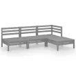 Seti vrtnega pohištva - Vrtna garnitura - Vrtni pohištvo set 4-delna trdna borovina siva