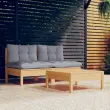 Ta vrtna garnitura je odlična izbira za sproščanje in uživanje v lepem vremenu, za dremanje ali klepetanje z družino ali prijatelji. Sedežna garnitura za teraso je izdelana iz trdne borovine, zato je močna in stabilna. Blazine prispevajo k dodatnemu udobju. Izdelek lahko kombinirate z drugimi modularnimi segmenti in tako ustvarite svojo lastno vrtno sedežno garnituro! Opomba: Da bi podaljšali življenjsko dobo vašega zunanjega pohištva, vam priporočamo, da ga zaščitite z vodoodporno prevleko.Barva blazine: SivaMaterial: Trdna borovina, blago (100 % poliester)Dimenzije srednjega kavča: 63,5 x 63,5 x 62,5 cm (Š x G x V)Dimenzije stolčka / mizice: 63,5 x 63,5 x 28,5 cm (Š x G x V)Dimenzije blazine za sedež: 60 x 60 x 5 cm (D x Š x D)Dimenzije blazine za hrbet: 60 x 32 x 5 cm (D x Š x D)Potrebno sestavljanje: DaPaket vsebuje:2 x Sredinski kavč1 x Stolček / mizica3 x Blazina za sedež2 x Blazina za hrbet Največ 110 kg na sedež.