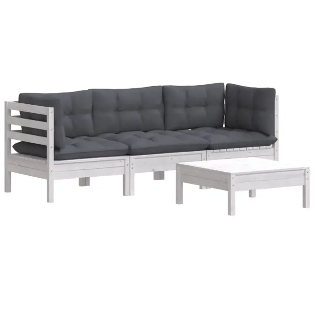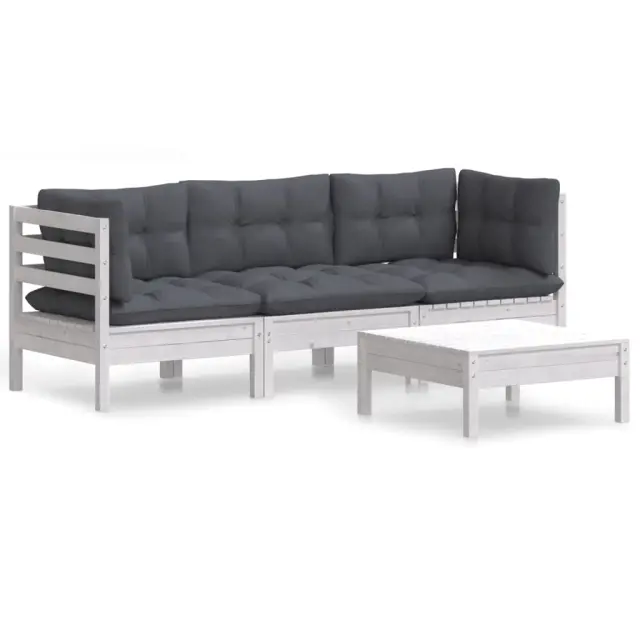 Seti vrtnega pohištva - Vrtna garnitura - Vrtni pohištvo set 4-delna z antracit blazinami borovina