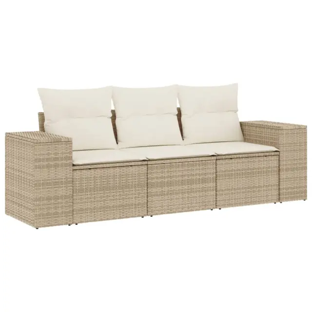 Seti vrtnega pohištva - Vrtna garnitura - Vrtni pohištvo set 3-delna z blazinami bež poli ratan