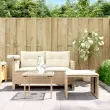 Ta vrtna sedežna garnitura je popoln dodatek za vaše dvorišče, teraso ali verando, saj zagotavlja udoben in vabljiv prostor za klepet z družino in prijatelji ali preprosto za sprostitev in uživanje na prostem. Vzdržljiv material: PE ratan, znan tudi kot poli ratan, je močan sintetični material, ki zahteva malo vzdrževanja in je videti kot naravni ratan. Je lahek, enostaven za čiščenje in se zaradi svoje vzdržljivosti in odpornosti na vremenske vplive pogosto uporablja za zunanje pohištvo.Udobno sedenje: To zunanje pohištvo z debelo oblazinjenimi blazinami zagotavlja udobno sedenje.Priročna stranska mizica: To zunanje pohištvo ima na naslonu za roke po višini nastavljivo stransko mizico, ki je priročen prostor za shranjevanje potrebščin na dosegu roke.Prevleko je mogoče odstraniti in oprati: Te sedežne blazine imajo odstranljive prevleke za lažje pranje in vzdrževanje.Steklena mizna plošča: Površina zunanje mize je izdelana iz močnega in trpežnega kaljenega stekla, kar omogoča enostavno čiščenje z vlažno krpo in vašemu zunanjemu prostoru doda pridih elegance. Dobro je vedeti:Če želite, da vaše zunanje pohištvo ostane lepo, vam priporočamo, da ga zaščitite z vodoodporno prevleko.Maksimalna nosilnost (na sedež): 110 kgUV-odpornoPlastične nastavljive nogePotrebno sestavljanje: DaKavč dvosed z mizico:Barva: BežMaterial: PE ratan, jeklo s prašnim premazom, kaljeno stekloCelotne dimenzije: 130 x 55 x 68 cm (Š x G x V)Velikost sedeža: 110 x 52 cm (Š x G)Višina sedeža, merjena od tal: 36 cmVišina naslonjal za roke od tal: 55 cmPremer stranske mizice: 20 cmVišina mize, merjena od tal: 63/69 cmVrtni stolček za noge:Barva: BežMaterial: PE ratan, jeklen okvir s prašnim premazomDimenzije: 50 x 50 x 38 cm (Š x G x V)Vrtna miza:Barva: BežMaterial: PE ratan, jeklo s prašnim premazom, kaljeno stekloDimenzije: 50 x 50 x 39 cm (Š x G x V)Blazina:Barva: Kremno belaMaterial prevleke: Tkanina (100 % poliester)Polnilo sedežne blazine: PenaPolnilo hrbtne blazine: bombažna vlaknaDimenzije sedežne blazine (dvosedežni kavč): 110 x 53 x 3 cm (D x Š x D)Dimenzije sedežne blazine (stolček za noge): 50 x 50 x 3 cm (D x Š x D)Dimenzije hrbtne blazine: 55 x 40 x 12 cm (D x Š x D)Paket vsebuje:1 x Vrtni kavč s stransko mizico1 x Vrtni stolček za noge1 x Vrtna miza1 x Sedežna blazina s snemljivo in pralno prevleko1 x Blazina za stolček za noge s snemljivo in pralno prevleko2 x Blazina za hrbet
