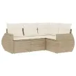 Seti vrtnega pohištva - Vrtna garnitura - Vrtni pohištvo set 4-delna z blazinami bež poli ratan