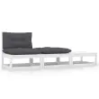 Ta vrtna garnitura je odlična izbira za sproščanje in uživanje v lepem vremenu, za dremanje ali klepetanje z družino ali prijatelji. Vrtna sedežna garnitura je izdelana iz trdne borovine, zato je močna in stabilna. Blazine prispevajo k dodatnemu udobju. Izdelek lahko kombinirate z drugimi modularnimi segmenti in tako ustvarite svojo lastno vrtno sedežno garnituro! Opomba: Da bi podaljšali življenjsko dobo vašega zunanjega pohištva, vam priporočamo, da ga zaščitite z vodoodporno prevleko.Barva: BelaBarva blazin: AntracitnaMaterial: Trdna borovina, blago (100 % poliester)Dimenzije sredinskega kavča: 70 x 70 x 67 cm (Š x G x V)Dimenzije stolčka za noge: 70 x 70 x 30 cm (Š x G x V)Dimenzije sedežne blazine: 70 x 70 x 8 cm (D x Š x D)Dimenzije blazine za hrbet: 70 x 40 x 8 cm (D x Š x D)Maksimalna nosilnost (na sedež): 110 kgPotrebno sestavljanje: DaPaket vsebuje:1 x Sredinski kavč2 x Stolček za noge2 x Sedežna blazina1 x Blazina za hrbet Največ 110 kg na sedež.