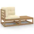 Ta vrtna garnitura je odlična izbira za sproščanje in uživanje v lepem vremenu, za dremanje ali klepetanje z družino ali prijatelji. Vrtna sedežna garnitura je izdelana iz trdne borovine, zato je močna in stabilna. Blazine prispevajo k dodatnemu udobju. Izdelek lahko kombinirate z drugimi modularnimi segmenti in tako ustvarite svojo lastno vrtno sedežno garnituro! Opomba: Da bi podaljšali življenjsko dobo vašega zunanjega pohištva, vam priporočamo, da ga zaščitite z vodoodporno prevleko.Barva: Medeno rjavaBarva blazine: KremMaterial: Trdna borovina, blago (100 % poliester)Dimenzije kotnega kavča: 70 x 70 x 67 cm (Š x G x V)Dimenzije stolčka za noge: 70 x 70 x 30 cm (Š x G x V)Dimenzije sedežne blazine: 70 x 70 x 8 cm (D x Š x D)Dimenzije blazine za hrbet: 70 x 40 x 8 cm (D x Š x D)Maksimalna nosilnost (na sedež): 110 kgPotrebno sestavljanje: DaPaket vsebuje:1 x Kotni kavč1 x Stolček za noge1 x Blazina za sedež2 x Blazina za hrbet Največ 110 kg na sedež.