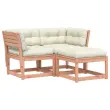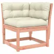 Ta vrtna sedežna garnitura je popoln dodatek za vaše dvorišče, teraso ali verando, saj zagotavlja udoben in vabljiv prostor za klepet z družino in prijatelji ali preprosto za sprostitev in uživanje na prostem. Trden les douglas: Trden les douglas je zelo trpežen les, ki je kot nalašč za uporabo na prostem. Les douglas je tudi dovolj močan ter potrebuje minimalno vzdrževanja, tudi pod vplivom vremenskih vplivov.Udobno sedenje: To zunanje pohištvo z naslonjali in debelo oblazinjenimi blazinami zagotavlja udobno sedenje.Zasnova iz letvic: Zasnova zunanjega kavča iz letvic učinkovito preprečuje nabiranje vode, kar zagotavlja, da ostane sedež suh in brez gnitja.Modularna zasnova: Ta komplet zunanjega pohištva ima modularno zasnovo, zaradi česar je popolnoma prilagodljiv in enostaven za premikanje, tako da lahko zunanjo garnituro postavite kakor koli želite. Dobro je vedeti:Če želite, da vaše zunanje pohištvo ostane lepo, vam priporočamo, da ga zaščitite z vodoodporno prevleko.Maksimalna nosilnost (na sedež): 110 kgPotrebno sestavljanje: DaKotni kavč:Material: Trden les douglas (neobdelan)Dimenzije: 73 x 73 x 78 cm (Š x G x V)Višina sedeža, merjena od tal: 38 cmVelikost sedeža: 63,5 x 63,5 cm (Š x G)Stolček za noge:Material: Trden les douglas (neobdelan)Dimenzije: 63,5 x 63,5 x 38 cm (Š x G x V)Velikost sedeža: 63,5 x 63,5 cm (Š x G)Blazina:Barva: Kremno belaMaterial prevleke: Tkanina (100 % poliester)Material polnila: 100 % poliesterDimenzije blazine za sedež: 60 x 60 x 12 cm (D x Š x D)Dimenzije blazine za hrbet: 60 x 32 x 12 cm (D x Š x D)Paket vsebuje:2 x Kotni kavč1 x Stolček za noge4 x Blazina za hrbet3 x Blazina za sedež Največ 110 kg na sedež.