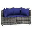 Ta trendovska vrtna sedežna garnitura z elegantno in sodobno zasnovo je odlična izbira za obedovanje ali sprostitev na vašem vrtu. Vremensko odporen material: PE ratan, znan tudi kot poli ratan, je odporen na vremenske vplive in enostaven za čiščenje. Na zunaj ostane lep dolgo časa. Ponuja odlično kakovost, priročnost in estetski videz.Vzdržljiv okvir: Prašno premazan jeklen okvir zagotavlja trdnost zunanje sedežne garniture za vsakodnevno uporabo na prostem.Praktična mizna plošča: Gladka površina vrtne mize je izdelana iz kaljenega stekla, ki ga je enostavno očistiti z vlažno krpo. Poleg tega je robustna mizna plošča odlična za odlaganje hrane, pijače in okrasnih stvari.Modularna zasnova: Vrtna sedežna garnitura je prilagodljiva in enostavna za premikanje, zato jo lahko kombinirate z drugimi modularnimi segmenti iz spletne trgovine in ustvarite svoj oseben sestav vrtne sedežne garniture!Udobna izkušnja sedenja: Naslonjalo za hrbet zagotavlja dodatno udobje pri sedenju na vrtnem kavču. Poleg tega debelo podložene blazine zagotavljajo udobje med sedenjem. Dobro je vedeti:Za čim lažjo montažo je vsakemu izdelku priložen priročnik. Opomba:Izdelek je zasnovan samo za uporabo na prostem. Ne shranjujte ga v zaprtih prostorih.Če želite, da vaše zunanje pohištvo ostane lepo, vam priporočamo, da ga zaščitite z vodoodporno prevleko.Barva: SivaBarva blazine: Temno modraMaterial: PE ratan, prašno barvano jeklo, blago (100 % poliester), kaljeno stekloPolnilo: Pena, bombažna vlaknaKotni kavč:Dimenzije (vsak): 63 x 63 x 57,5 cm (Š x G x V)Velikost sedeža: 55 x 55 cm (Š x G)Višina sedeža, merjena od tal: 31 cmDimenzije sedežne blazine: 55 x 55 x 3 cm (Š x G x D)Velikost blazine: 45 x 37 cm (Š x G)Klubska mizica:Dimenzije: 78 x 53 x 29,5 cm (Š x G x D)Debelina stekla: 4 mmNastavljive nogePaket vsebuje:2 x Kotni kavč2 x Sedežna blazina4 x Blazina1 x Klubska mizica Največ 110 kg na sedež.