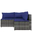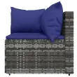 Ta trendovska vrtna sedežna garnitura z elegantno in sodobno zasnovo je odlična izbira za obedovanje ali sprostitev na vašem vrtu. Vremensko odporen material: PE ratan, znan tudi kot poli ratan, je odporen na vremenske vplive in enostaven za čiščenje. Na zunaj ostane lep dolgo časa. Ponuja odlično kakovost, priročnost in estetski videz.Vzdržljiv okvir: Prašno premazan jeklen okvir zagotavlja trdnost zunanje sedežne garniture za vsakodnevno uporabo na prostem.Modularna zasnova: Vrtna sedežna garnitura je prilagodljiva in enostavna za premikanje, zato jo lahko kombinirate z drugimi modularnimi segmenti iz spletne trgovine in ustvarite svoj oseben sestav vrtne sedežne garniture!Udobna izkušnja sedenja: Naslonjalo za hrbet zagotavlja dodatno udobje pri sedenju na vrtnem kavču. Poleg tega debelo podložene blazine zagotavljajo udobje med sedenjem. Dobro je vedeti:Za čim lažjo montažo je vsakemu izdelku priložen priročnik. Opomba:Izdelek je zasnovan samo za uporabo na prostem. Ne shranjujte ga v zaprtih prostorih.Če želite, da vaše zunanje pohištvo ostane lepo, vam priporočamo, da ga zaščitite z vodoodporno prevleko.Barva: SivaBarva blazine: Temno modraMaterial: PE ratan, jeklo s prašnim premazom, blago (100 % poliester)Polnilo: Pena, bombažna vlaknaKotni kavč:Dimenzije: 63 x 63 x 57,5 cm (Š x G x V)Velikost sedeža: 55 x 55 cm (Š x G)Višina sedeža, merjena od tal: 31 cmDimenzije sedežne blazine: 55 x 55 x 3 cm (Š x G x D)Velikost blazine (velika): 61 x 38 cm (Š x G)Velikost blazine (majhna): 46 x 38 cm (Š x G)Sredinski kavč:Dimenzije (vsak): 63 x 63 x 57,5 cm (Š x G x V)Velikost sedeža: 63 x 55 cm (Š x G)Višina sedeža, merjena od tal: 31 cmDimenzije sedežne blazine: 63 x 55 x 3 cm (Š x G x D)Velikost vzglavnika: 68 x 37 cm (Š x G)Nastavljive nogePaket vsebuje:1 x Kotni kavč2 x Sredinski kavč3 x Blazina za sedež4 x Blazina Največ 110 kg na sedež.