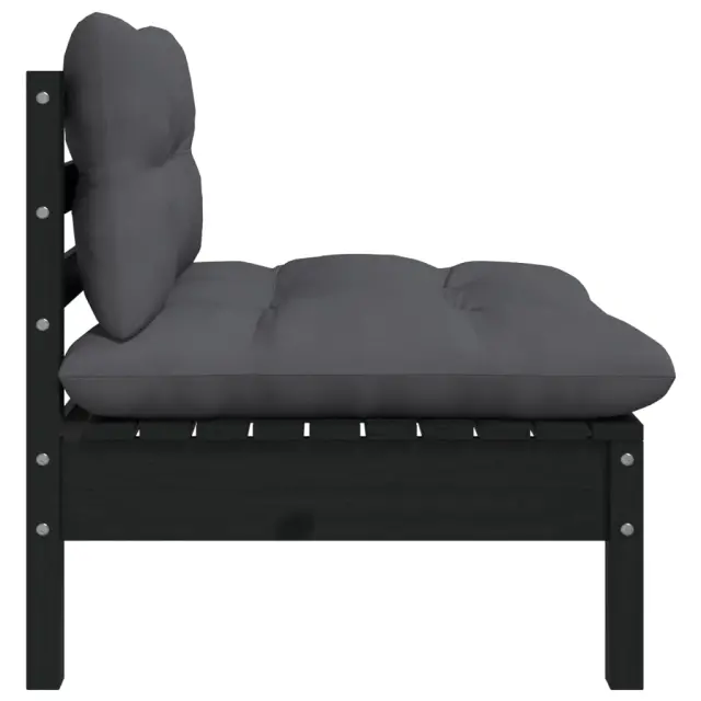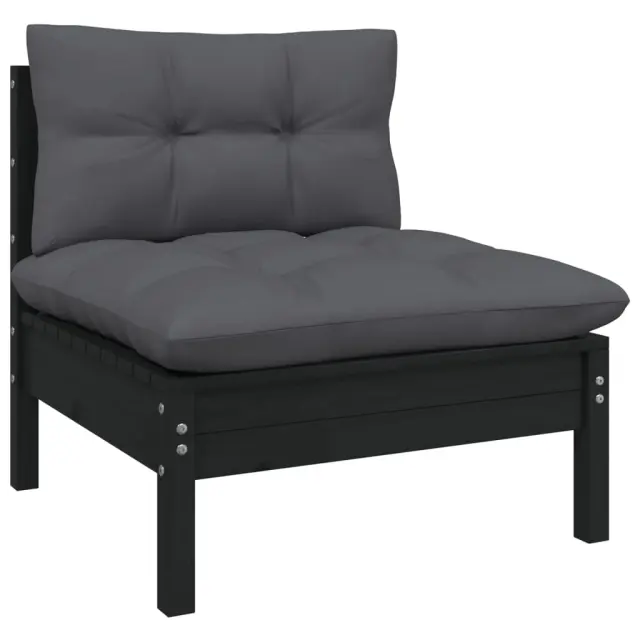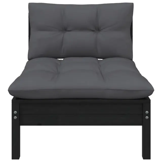 Seti vrtnega pohištva - Vrtna garnitura - Vrtni pohištvo set 3-delna z blazinami črna trdna borovina
