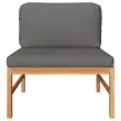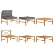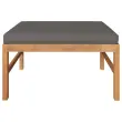 Ta lesena vrtna sedežna garnitura, ki izstopa z elegantnim dizajnom in mehkimi blazinami, se odlično poda na vaš vrt, teraso ali verando. Primeren je za klepetanje z družino in prijatelji ali pa samo za uživanje v lepem vremenu. Ta komplet pohištva iz izjemno trpežne tikovine je bil sušen na zraku, sušen v peči in nato fino brušen za pridobivanje gladkega izgleda. Tikovina je znana po svoji izjemni moči in odpornosti na vremenske vplive, zato je izmed vseh vrst lesa najbolj primerna za vrtno pohištvo. Tikovina je popolna izbira, če želite kupiti dolgotrajen kos vrtnega pohištva. Brušena površina je preprosta za čiščenje z vlažno krpo. Debelo podložene sedežne in hrbtne blazine ter priložen stolček za noge dodajajo izjemno udobje. Mizica je idealna za odlaganje pijače in hrane.Barva blazine: Temno sivaMaterial: Fino brušena trdna tikovina s premazom na vodni osnovi, blago (100 % poliester)Dimenzije sredinskega kavča: 63 x 66 x 60 cm (Š x G x V)Višina sedeža, merjena od tal: 31 cmVelikost sedeža: 62,5 x 62,5 cm (Š x G)Dimenzije stolčka za noge: 62,5 x 62,5 x 30 cm (Š x G x V)Dimenzije mizice: 62,5 x 62,5 x 30 cm (Š x G x V)Debelina blazine za sedež: 5 cmDebelina blazine za hrbet: 15 cmPotrebno sestavljanje: DaPaket vsebuje:1 x Sredinski kavč1 x Stolček za noge1 x Miza2 x Sedežna blazina1 x Blazina za hrbet