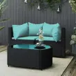Ta trendovska vrtna sedežna garnitura z elegantno in sodobno zasnovo je odlična izbira za obedovanje ali sprostitev na vašem vrtu. Vremensko odporen material: PE ratan, znan tudi kot poli ratan, je odporen na vremenske vplive in enostaven za čiščenje. Na zunaj ostane lep dolgo časa. Ponuja odlično kakovost, priročnost in estetski videz.Vzdržljiv okvir: Prašno premazan jeklen okvir zagotavlja trdnost zunanje sedežne garniture za vsakodnevno uporabo na prostem.Praktična mizna plošča: Gladka površina vrtne mize je izdelana iz kaljenega stekla, ki ga je enostavno očistiti z vlažno krpo. Poleg tega je robustna mizna plošča odlična za odlaganje hrane, pijače in okrasnih stvari.Modularna zasnova: Vrtna sedežna garnitura je prilagodljiva in enostavna za premikanje, zato jo lahko kombinirate z drugimi modularnimi segmenti iz spletne trgovine in ustvarite svoj oseben sestav vrtne sedežne garniture!Udobna izkušnja sedenja: Naslonjalo za hrbet zagotavlja dodatno udobje pri sedenju na vrtnem kavču. Poleg tega debelo podložene blazine zagotavljajo udobje med sedenjem. Dobro je vedeti:Za čim lažjo montažo je vsakemu izdelku priložen priročnik. Opomba:Izdelek je zasnovan samo za uporabo na prostem. Ne shranjujte ga v zaprtih prostorih.Če želite, da vaše zunanje pohištvo ostane lepo, vam priporočamo, da ga zaščitite z vodoodporno prevleko.Barva: ČrnaBarva blazine: ModraMaterial: PE ratan, prašno barvano jeklo, blago (100 % poliester), kaljeno stekloPolnilo: Pena, bombažna vlaknaKotni kavč:Dimenzije (vsak): 63 x 63 x 57,5 cm (Š x G x V)Velikost sedeža: 55 x 55 cm (Š x G)Višina sedeža, merjena od tal: 31 cmDimenzije sedežne blazine: 55 x 55 x 3 cm (Š x G x D)Velikost blazine: 45 x 37 cm (Š x G)Klubska mizica:Dimenzije: 78 x 53 x 29,5 cm (Š x G x D)Debelina stekla: 4 mmNastavljive nogePaket vsebuje:2 x Kotni kavč2 x Sedežna blazina4 x Blazina1 x Klubska mizica Največ 110 kg na sedež.