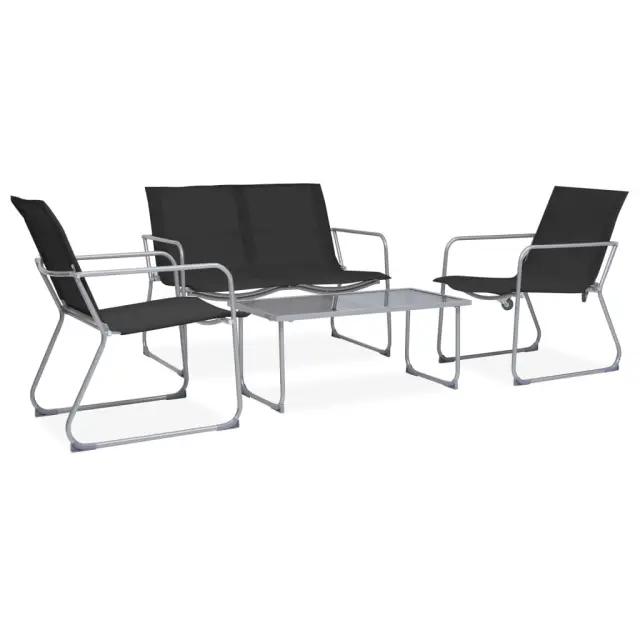 Seti vrtnega pohištva - Vrtna garnitura - Vrtni pohištvo set 4-delna blago in jeklo črna