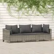 Seti vrtnega pohištva - Vrtna garnitura - Vrtni pohištvo set 3-delna z blazinami siv poli ratan