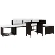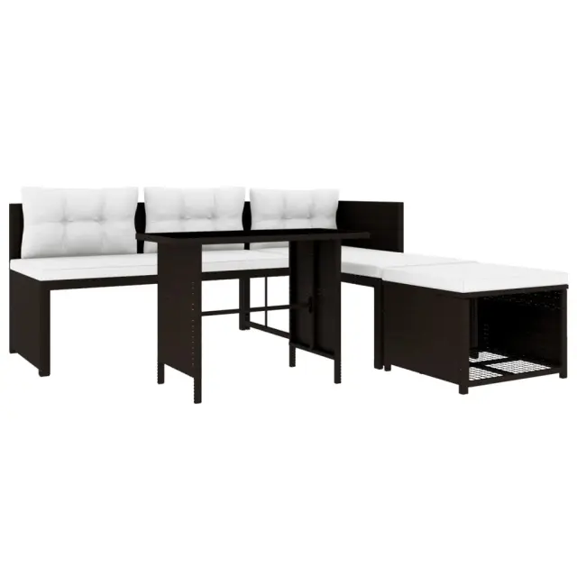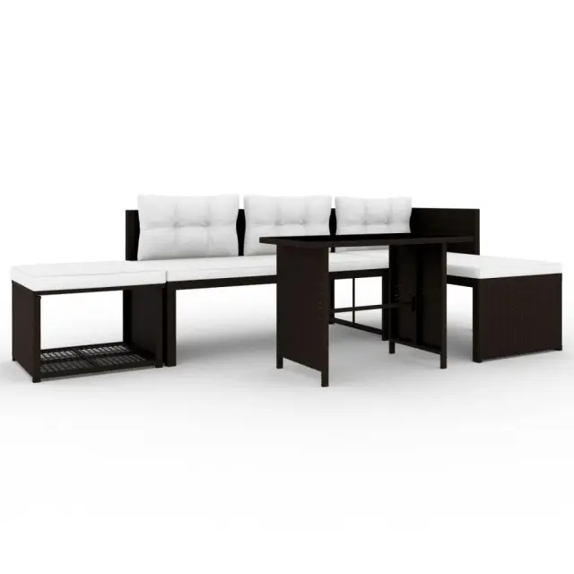 Ta 4-delna vrtna garnitura bo prava zvezda vašega vrta, balkona ali terase. Je odlična kombinacija stila in funkcionalnosti. Zahvaljujoč vodoodpornemu PE ratanu je ta sedežna garnitura vzdržljiva in preprosta za čiščenje. Jeklen okvir s prašnim premazom daje garnituri trdnost in stabilnost. Priložene so tudi izjemno udobne, debelo podložene blazine in vzglavniki, ki zagotavljajo izjemno udobje. Prevleke iz poliestra ne potrebujejo veliko vzdrževanja, poleg tega jih lahko snamete in operete. Paket vsebuje 1 mizo, 1 stolček za noge, 1 kavč dvosed, 1 ležalnik, 3 blazine za sedeže in 3 blazine za hrbet. Opomba: Če želite, da vam bo komplet služil še dolgo, priporočamo, da ga med dežjem, snegom ali zmrzaljo pokrijete.Barva: RjavaMaterial: PE (polietilen) ratan + steklena površina mize + jeklen okvir s prašnim premazomMaterial prevlek za blazine: 100 % poliesterDebelina blazine: 5 cmVelikost vzglavnika (večji): 60 x 33 cm (D x Š)Velikost vzglavnika (manjši): 54 x 33 cm (D x Š)Celotne dimenzije: 186 x 186 x 66 cm (Š x G x V)Dimenzije mize: 100 x 58 x 66 cm (D x Š x V)Dimenzije stolčka za noge: 61 x 61 x 37 cm (D x Š x V)Dimenzije dvoseda: 125 x 61 x 66 cm (Š x G x V)Dimenzije ležalnika: 125 x 61 x 66 cm (Š x G x V)Širina sedeža: 125 cmGlobina sedeža: 61 cmVišina sedeža, merjena od tal brez blazine: 37 cmPrevleke za blazine so pralneEnostavna montažaPaket vsebuje:1 x Miza1 x Stolček za noge1 x Kavč dvosed1 x Ležalnik3 x Blazina za sedež3 x Blazina za naslonjalo