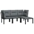 Elegantna in sodobna vrtna sedežna garnitura je popolna izbira za obedovanje ali sproščanje na vašem vrtu. Vremensko odporen material: PE ratan, znan tudi kot poli ratan, je odporen na vremenske vplive in enostaven za čiščenje. Na zunaj ostane lep dolgo časa. Ponuja odlično kakovost, priročnost in estetski videz. Trpežen in stabilen okvir: Prašno premazan jeklen okvir sedežne garniture zagotavlja trdnost in stabilnost.Udobna izkušnja sedenja: Naslonjalo za hrbet zagotavlja dodatno udobje pri sedenju na stolu. Poleg tega debelo podložene blazine zagotavljajo udobje med sedenjem.Modularna zasnova: Zunanja sedežna garnitura je prilagodljiva in enostavna za premikanje, zato jo lahko kombinirate z drugimi modularnimi segmenti iz spletne trgovine in ustvarite svoj osebni sestav vrtne sedežne garniture!Praktičen stolček za noge: Stolček za noge je primeren za počitek nog in sprostitev, hkrati pa vam nudi dodaten sedež na prostem. Dobro je vedeti:Za čim lažjo montažo je vsakemu izdelku priložen priročnik.Opomba:Če želite, da vaše zunanje pohištvo ostane lepo, vam priporočamo, da ga zaščitite z vodoodporno prevleko.Kotni stol:Barva: ČrnaMaterial: PE ratan, tekstilen, prašno lakirano jekloDimenzije: 62 x 62 x 68 cm (Š x G x V)Velikost sedeža: 55 x 55 cm (Š x G)Višina sedeža, merjena od tal: 31 cmMaksimalna nosilnost (na sedež): 110 kgEnojni stol:Barva: ČrnaMaterial: PE ratan, tekstilen, prašno lakirano jekloDimenzije: 55 x 62 x 68 cm (Š x G x V)Velikost sedeža: 55 x 55 cm (Š x G)Višina sedeža, merjena od tal: 31 cmMaksimalna nosilnost: 110 kgStolček za noge:Barva: ČrnaMaterial: PE ratan, tekstilen, prašno lakirano jekloDimenzije: 55 x 55 x 34,5 cm (Š x G x V)Velikost sedeža: 55 x 55 cm (Š x G)Višina sedeža, merjena od tal: 31 cmMaksimalna nosilnost: 110 kgBlazina:Barva blazin: Temno sivaMaterial prevlek za blazine: Tkanina (100 % poliester)Polnilo sedežne blazine: PenaPolnilo hrbtne blazine: PP bombažDimenzije hrbtne blazine: 55 x 45 x 12 cm (D x Š x D)Dimenzije sedežne blazine: 55 x 55 x 3,5 cm (D x Š x D)Paket vsebuje:2 x Kotni stol1 x Enojni stol1 x Stolček za noge4 x Blazina za sedež5 x Blazina za hrbet Maksimalna teža na sedež: 110 kg. Bodite pozorni na tveganje odprtega ognja in druge vire močne toplote v bližini izdelka.
