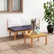 Ta sedežna garnitura je odlična izbira za sproščanje in uživanje v lepem vremenu, dremanje ali klepetanje z vašo družino ali prijatelji. Ta brezčasna lesena sedežna garnitura iz letvic bo vaši verandi, terasi ali vrtu dodala rustikalen čar. Ta komplet zunanjega pohištva iz trdnega akacijevega lesa je vremensko odporen in zelo trpežen. V kombinaciji z debelo podloženimi blazinami ta sedežna garnitura za teraso zagotavlja najvišjo raven udobja. Kombinirate jo lahko tudi z drugimi modularnimi segmenti in tako ustvarite svojo lastno sedežno garnituro! Opomba: Da bi podaljšali življenjsko dobo vašega zunanjega pohištva, vam priporočamo, da ga zaščitite z vodoodporno prevleko.Barva blazine: Temno siva, belaMaterial: Trden akacijev les, blago (100 % poliester)Dimenzije kotnega kavča: 65 x 65 x 65 cm (Š x G x V)Dimenzije sredinskega kavča: 60 x 65 x 65 cm (Š x G x V)Globina sedeža: 60 cmVišina sedeža (brez blazine): 29 cmVišina sedeža (vključno z blazino): 35 cmDimenzije blazine za sedež: 54 x 58,5 x 6 cm (Š x G x D)Dimenzije hrbtne blazine: 40 x 40 x 10 cm (Š x G x D)Potrebno sestavljanje: DaPaket vsebuje:1 x Kotni kavč1 x Sredinski kavč2 x Sedežna blazina3 x Blazina za hrbet