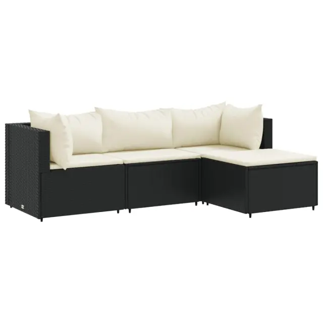 Seti vrtnega pohištva - Vrtna garnitura - Vrtni pohištvo set 4-delna z blazinami črn poli ratan