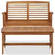 Lesena vrtna garnitura je sestavljena iz 1 klopi in 1 klubske mizice. Zasnovana je za vaš vrt, teraso ali drug zunanji prostor, ki mu bo dodala starinski izgled. Komplet zunanjega pohištva je izdelan iz trdnega akacijevega lesa z oljnim premazom, zato je stabilen in vzdržljiv. Zahvaljujoč površini iz trdnega lesa z letvenim dizajnom klubska mizica nudi prostor za odlaganje prigrizkov, košar s sadjem, okrasnih predmetov in drugih pomembnih stvari. Naslonjala za hrbet in roke nudijo udobno sedenje na klopi. Miza in klop imata na strani dvojne prečke. Pomembna opomba: Barve in vzorci se od kosa do kosa razlikujejo, zato je vsak kos edinstven; dostava je naključna.Material: Trden akacijev les z oljnim premazomDimenzije mize: 102 x 50 x 43 cm (D x Š x V)Dimenzije klopi: 119 x 67 x 83 cm (D x Š x V)Velikost sedeža: 110 x 84,5 cm (Š x G)Višina sedeža, merjena od tal: 34 cmVišina naslonjal za roke, merjena od tal: 60,5 cmPotrebno sestavljanje: DaPaket vsebuje:1 x Vrtna klop1 x Klubska mizica