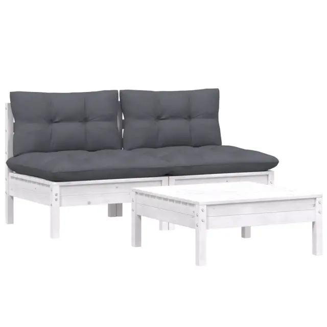 Seti vrtnega pohištva - Vrtna garnitura - Vrtni pohištvo set 3-delna z antracit blazinami borovina