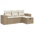 Seti vrtnega pohištva - Vrtna garnitura - Vrtni pohištvo set 4-delna z blazinami bež poli ratan