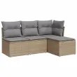 Seti vrtnega pohištva - Vrtna garnitura - Vrtni pohištvo set 4-delna z blazinami bež poli ratan