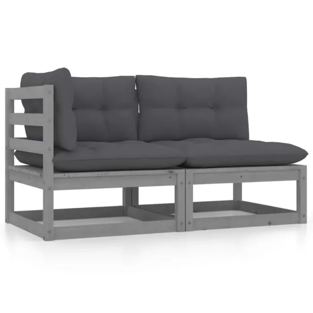 Seti vrtnega pohištva - Vrtna garnitura - Vrtni pohištvo set 2-delna z blazinami siva trdna borovina