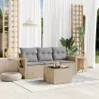 Seti vrtnega pohištva - Vrtna garnitura - Vrtni pohištvo set 4-delna z blazinami bež poli ratan