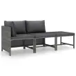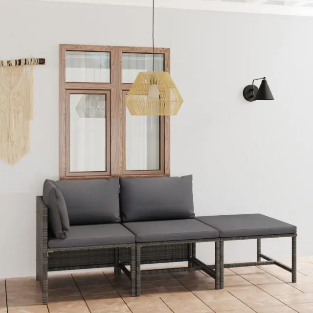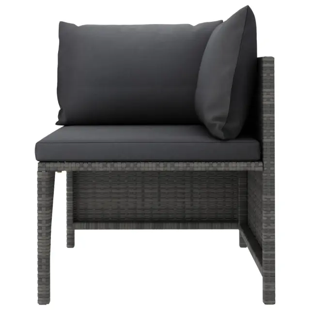 S to vrtno sedežno garnituro iz poli ratana lahko ustvarite odličen prostor za sproščanje. Ta udobna vrtna sedežna garnitura ima prašno premazan jeklen okvir, ki je oblečen v PE ratan, zato je trdna in preprosta za čiščenje. Debelo podložene blazine dodajajo izjemno udobje. Prevleke za blazine imajo zadrge ter so odstranljive in pralne. Stolček za noge lahko služi tudi kot klubska mizica. Ta zunanja sedežna garnitura je lahka, zato jo boste brez težav premikali. Zahvaljujoč modularnemu dizajnu lahko garnituro postavite v različne oblike. Pomembna opomba: Če želite, da vam bo sedežna garnitura služila še dolgo, priporočamo, da jo v primeru dežja, snega ali zmrzali pokrijete.Barva: SivaBarva blazine: AntracitnaMaterial: PE (polietilen) ratan, jeklo s prašnim premazomMaterial blazine: Blago (100 % poliester)Material polnila blazine za sedež: PenaMaterial polnila blazine za hrbet: Bombažna vlaknaDebelina blazine za sedež: 5 cmDebelina blazine za hrbet: 15 cmKotni kavč:Dimenzije: 60 x 60 x 60 cm (Š x G x V)Širina sedeža: 57 cmGlobina sedeža: 57 cmVišina sedeža, merjena od tal: 32 cmSredinski kavč:Dimenzije: 54 x 60 x 60 cm (Š x G x V)Globina sedeža: 57 cmVišina sedeža, merjena od tal: 32 cmStolček za noge:Dimenzije: 60 x 60 x 32 cm (Š x G x V)Potrebno sestavljanje: DaPaket vsebuje:1 x Kotni kavč1 x Sredinski kavč1 x Stolček za noge3 x Blazina za sedež3 x Blazina za hrbet