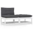 Ta vrtna garnitura je odlična izbira za sproščanje in uživanje v lepem vremenu, za dremanje ali klepetanje z družino ali prijatelji. Vrtna sedežna garnitura je izdelana iz trdne borovine, zato je močna in stabilna. Blazine prispevajo k dodatnemu udobju. Izdelek lahko kombinirate z drugimi modularnimi segmenti in tako ustvarite svojo lastno vrtno sedežno garnituro! Opomba: Da bi podaljšali življenjsko dobo vašega zunanjega pohištva, vam priporočamo, da ga zaščitite z vodoodporno prevleko.Barva: BelaBarva blazin: AntracitnaMaterial: Trdna borovina, blago (100 % poliester)Dimenzije sredinskega kavča: 70 x 70 x 67 cm (Š x G x V)Dimenzije stolčka za noge: 70 x 70 x 30 cm (Š x G x V)Dimenzije sedežne blazine: 70 x 70 x 8 cm (D x Š x D)Dimenzije blazine za hrbet: 70 x 40 x 8 cm (D x Š x D)Maksimalna nosilnost (na sedež): 110 kgPotrebno sestavljanje: DaPaket vsebuje:1 x Sredinski kavč1 x Stolček za noge2 x Sedežna blazina1 x Blazina za hrbet Največ 110 kg na sedež.
