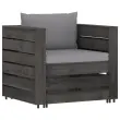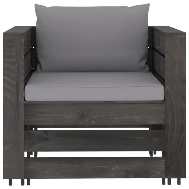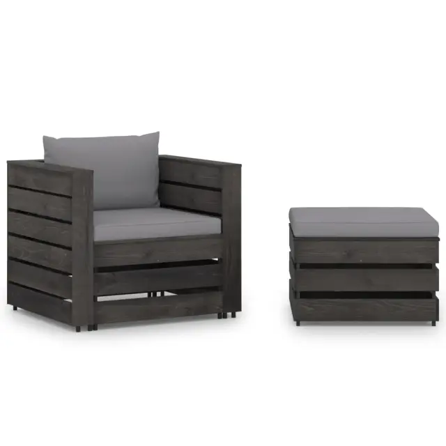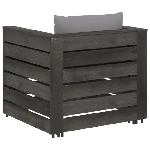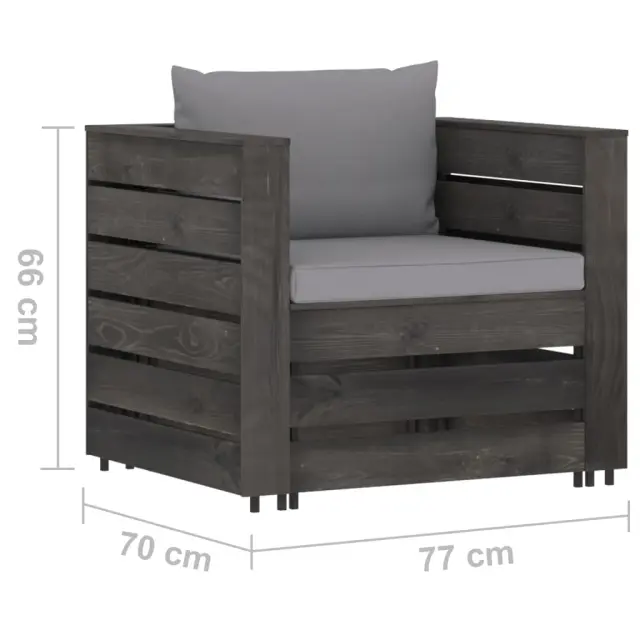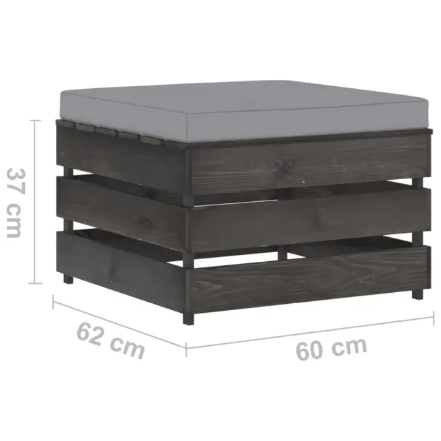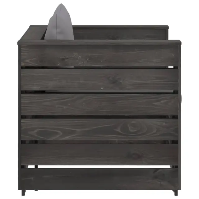 Ta vrtna sedežna garnitura je idealna izbira za sproščanje in uživanje v lepem vremenu, za počitek ali pogovor z vašo družino ali prijatelji. Lesena sedežna garnitura ima brezčasno obliko iz palet, vaši terasi, vrtu ali dnevni sobi pa bo dodala pridih rustikalnega čara. Garnitura iz palet iz impregnirane borovine je vzdržljiva in vremensko odporna. Zunanja sedežna garnitura ima trdno konstrukcijo ter ne potrebuje veliko vzdrževanja. V kombinaciji z debelo podloženimi blazinami sedežna garnitura zagotavlja največje udobje. Poleg tega modularna zasnova omogoča, da garnituro postavite v poljubno razporeditev po vašem okusu. Opomba: Da bi podaljšali življenjsko dobo vašega zunanjega pohištva, vam priporočamo, da ga zaščitite z vodoodporno prevleko.Barva blazine: SivaMaterial: Borovina, siva impregniranaMaterial blazine: Tkanina (100 % poliester)Dimenzije mizice / stolčka: 60 x 62 x 37 cm (Š x G x V)Dimenzije enoseda: 77 x 70 x 66 cm (Š x G x V)Debelina blazine za sedež: 6 cmDebelina blazine za hrbet: 13 cmPotrebno sestavljanje: DaPaket vsebuje:1 x Mizica / stolček1 x Kavč enosed2 x Sedežna blazina1 x Blazina za hrbet