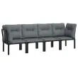 Elegantna in sodobna vrtna sedežna garnitura je popolna izbira za obedovanje ali sproščanje na vašem vrtu. Vremensko odporen material: PE ratan, znan tudi kot poli ratan, je odporen na vremenske vplive in enostaven za čiščenje. Na zunaj ostane lep dolgo časa. Ponuja odlično kakovost, priročnost in estetski videz. Trpežen in stabilen okvir: Prašno premazan jeklen okvir sedežne garniture zagotavlja trdnost in stabilnost.Udobna izkušnja sedenja: Naslonjalo za hrbet zagotavlja dodatno udobje pri sedenju na stolu. Poleg tega debelo podložene blazine zagotavljajo udobje med sedenjem.Modularna zasnova: Zunanja sedežna garnitura je prilagodljiva in enostavna za premikanje, zato jo lahko kombinirate z drugimi modularnimi segmenti iz spletne trgovine in ustvarite svoj osebni sestav vrtne sedežne garniture! Dobro je vedeti:Za čim lažjo montažo je vsakemu izdelku priložen priročnik.Opomba:Če želite, da vaše zunanje pohištvo ostane lepo, vam priporočamo, da ga zaščitite z vodoodporno prevleko.Kotni stol:Barva: ČrnaMaterial: PE ratan, tekstilen, prašno lakirano jekloDimenzije: 62 x 62 x 68 cm (Š x G x V)Velikost sedeža: 55 x 55 cm (Š x G)Višina sedeža, merjena od tal: 31 cmMaksimalna nosilnost (na sedež): 110 kgEnojni stol:Barva: ČrnaMaterial: PE ratan, tekstilen, prašno lakirano jekloDimenzije: 55 x 62 x 68 cm (Š x G x V)Velikost sedeža: 55 x 55 cm (Š x G)Višina sedeža, merjena od tal: 31 cmMaksimalna nosilnost (na sedež): 110 kgBlazina:Barva blazin: Temno sivaMaterial prevlek za blazine: Tkanina (100 % poliester)Polnilo sedežne blazine: PenaPolnilo hrbtne blazine: PP bombažDimenzije hrbtne blazine: 55 x 45 x 12 cm (D x Š x D)Dimenzije sedežne blazine: 55 x 55 x 3,5 cm (D x Š x D)Paket vsebuje:2 x Kotni stol2 x Enojni stol4 x Blazina za sedež6 x Blazina za hrbet Maksimalna teža na sedež: 110 kg. Bodite pozorni na tveganje odprtega ognja in druge vire močne toplote v bližini izdelka.